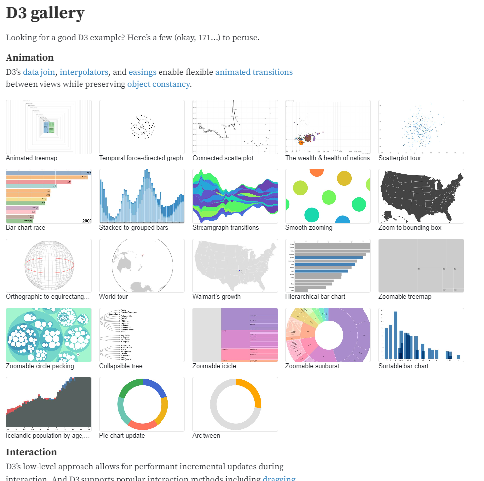- 장점 - 그려지는 모든 요소를 컨트롤할 수 있고, d3 같은 시각화 라이브러리를 사용하면 동적인 그래픽을 만들 수 있다.