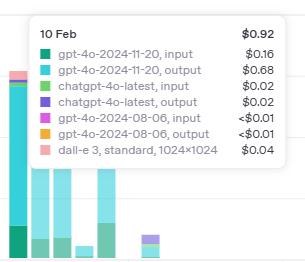 dall-e 사용을 제외하고도 하루 1달러를 넘어가는 날들이 있다.