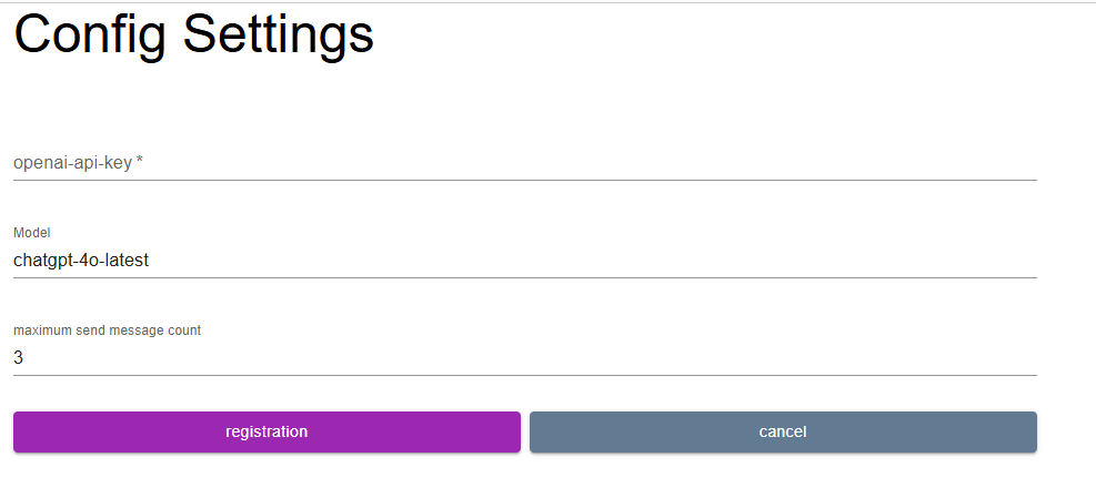 api-key를 입력하고 모델을 선택했다면 registration을 클릭하고 다시 main으로 돌아온다.