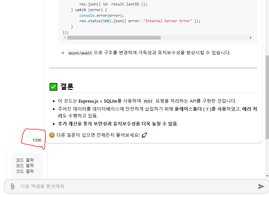 3개의 내용은 246 토큰, 1개의 답변은 1330 토큰이 들었다.