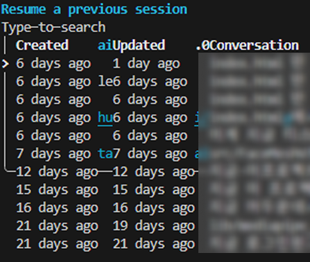 `codex resume` 명령어를 사용하면 기존 세션을 선택할 수 있다.