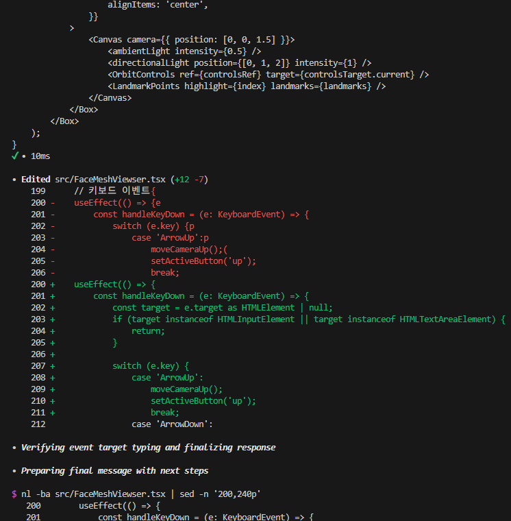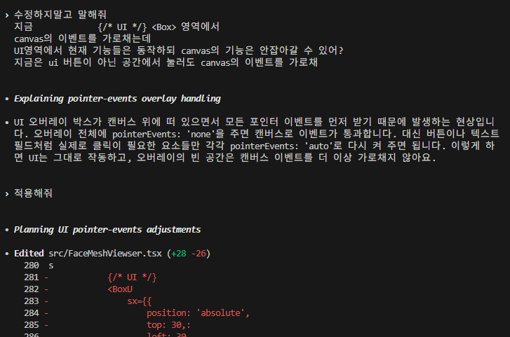 그럴 때 Codex는 내가 수정한 코드를 무시하고, 마치 수정 전 상태(응답1)로 되돌아가 그 버전에서 코드를 이어서 수정하는 듯한 동작을 보인다.