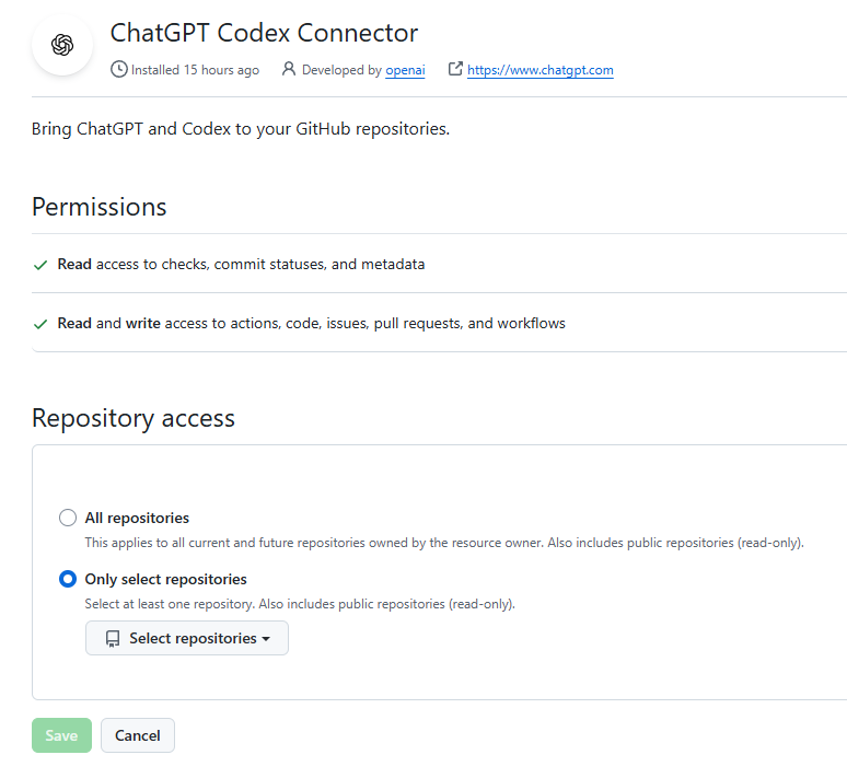 "환경 만들기"와는 별개로, Connector에 Repository 접근 권한이 허용되야 PR이 가능하다.