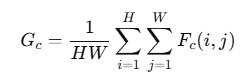 각 채널의 공간 차원(H×W)을 요약하는 연산이고 i, j 위치에 대한 정보는 사라진다.