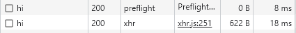 네트워크에서 preflight가 꼭 먼저 찍히는 건 아니고 preflight가 허용되지 않으면 본 요청은 pending 상태에서 실패로 반환된다.