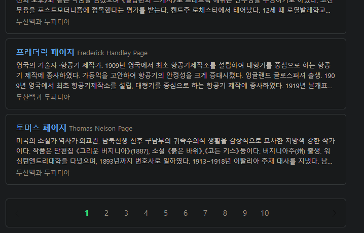 페이지를 구현한다면 두 가지 경우를 생각해 볼 수 있다. 스크롤이 끝에 다다르면 추가 요청으로 정보를 불러오는 무한 스크롤과 페이지 전환으로 다음 정보를 보여주는 페이지네이션이다.