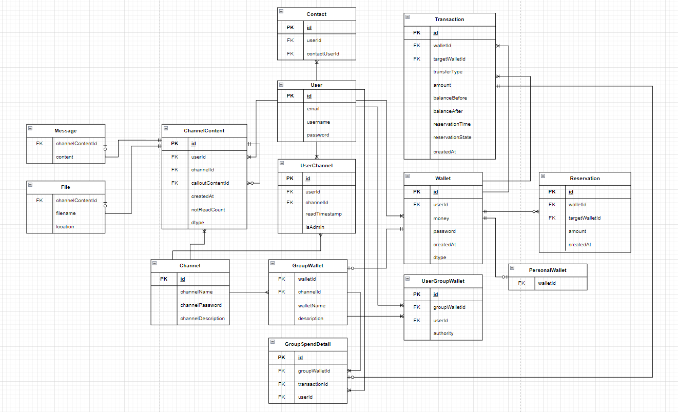나는 reservation을 제외한 wallet 을 구성했고 다른 팀원분들이 user, channel 를 구성했다.
