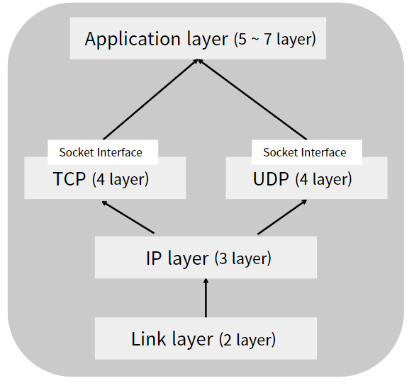 Socket Interface 를 통해 TCP, UDP 통신 프로토콜을 사용할 수 있다.