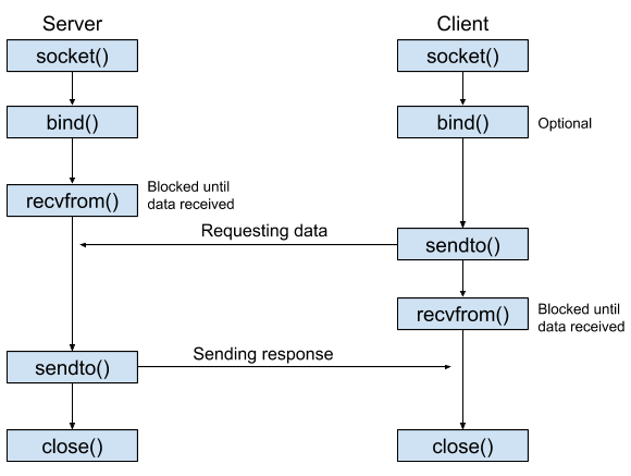 UDP는 연결된 채로 sendto() 를 실행하지 않기에 하나의 sendto()에 하나의 recvfrom()이 호출된다.