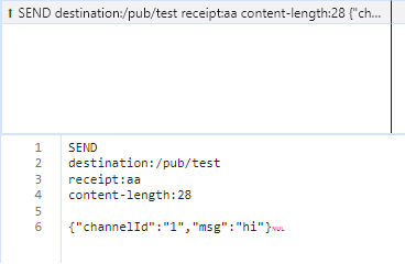 SEND 프레임에 receipt 헤더는 RECEIPT 프레임 응답이 안보인다. (jmeter 하고 @stomp/stompjs 둘 다 안보임)